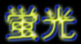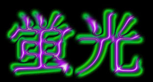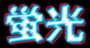 ・フォント 平成明朝 ・ぼかし 4pixels ・移動量 2pixels ・レベル補正 189 0.36 255 (入力レベル) ・色相 -72 |